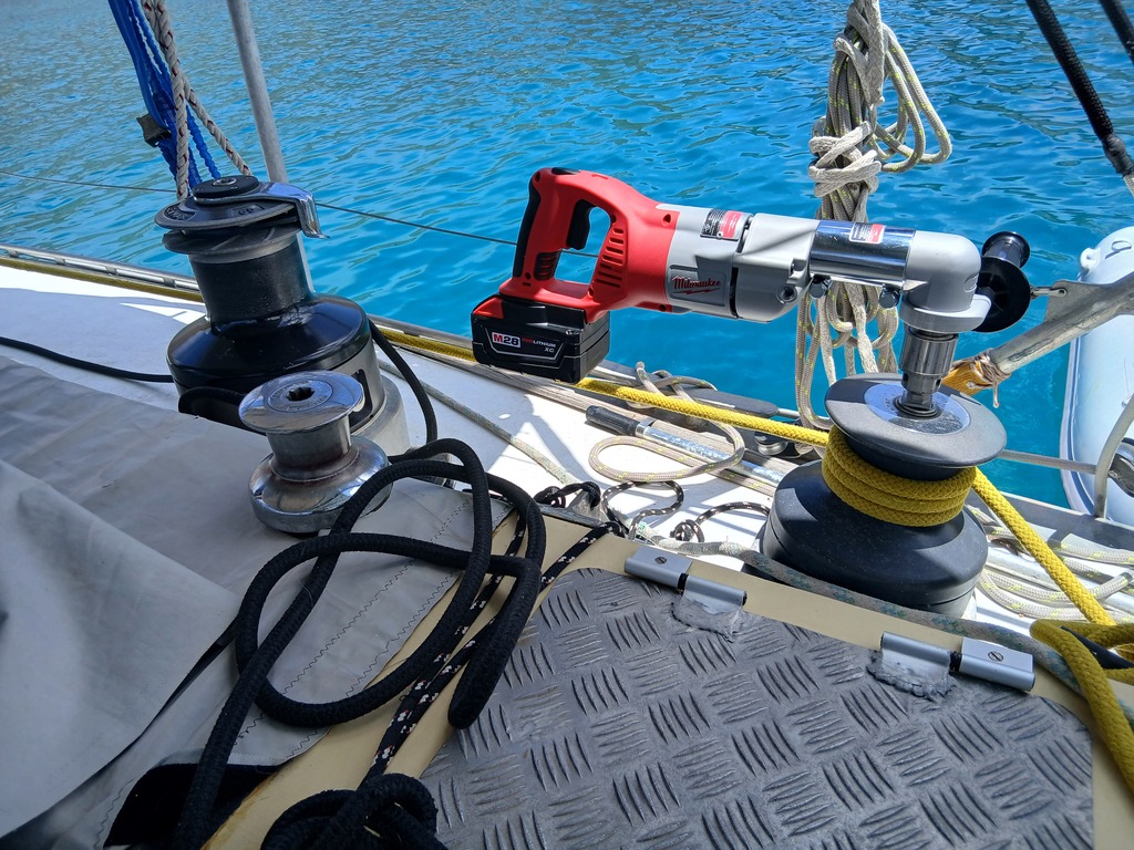 C’est pas la panacée c’est plutôt difficile à manœuvrer il en faut une avec une poignée; mais la perceuse aide bien quand on fatigue et qu’on a plus 20 ans en particulier en solo pour border après un virement. Ça donne l’impression d’avoir un équipier supplémentaire qui a fait des années de musculation.