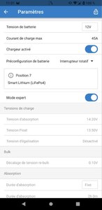 Fabien83:Surtout pas d'egalisation avec des batteries LFP ! Pas non plus de compensation en température. ·le 20 nov. 07:34