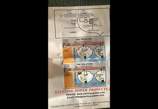 surtout qu'apparement vous n'êtes pas d'accord sur le schéma d'installation fournie par sterling (et partagé plus haut) dans lequel le moins batterie et la terre du tableau 220 sont branchés a l'anode (ou peut etre la plaque de masse)
