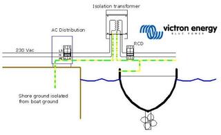 Mais, (solution lourde et chère), contrairement à l'"Isolation galvanique", un "Transformateurs d’isolement" recrée une "Terre de Mer" locale, qui elle, doit être reliée à la "Masse" du navire.