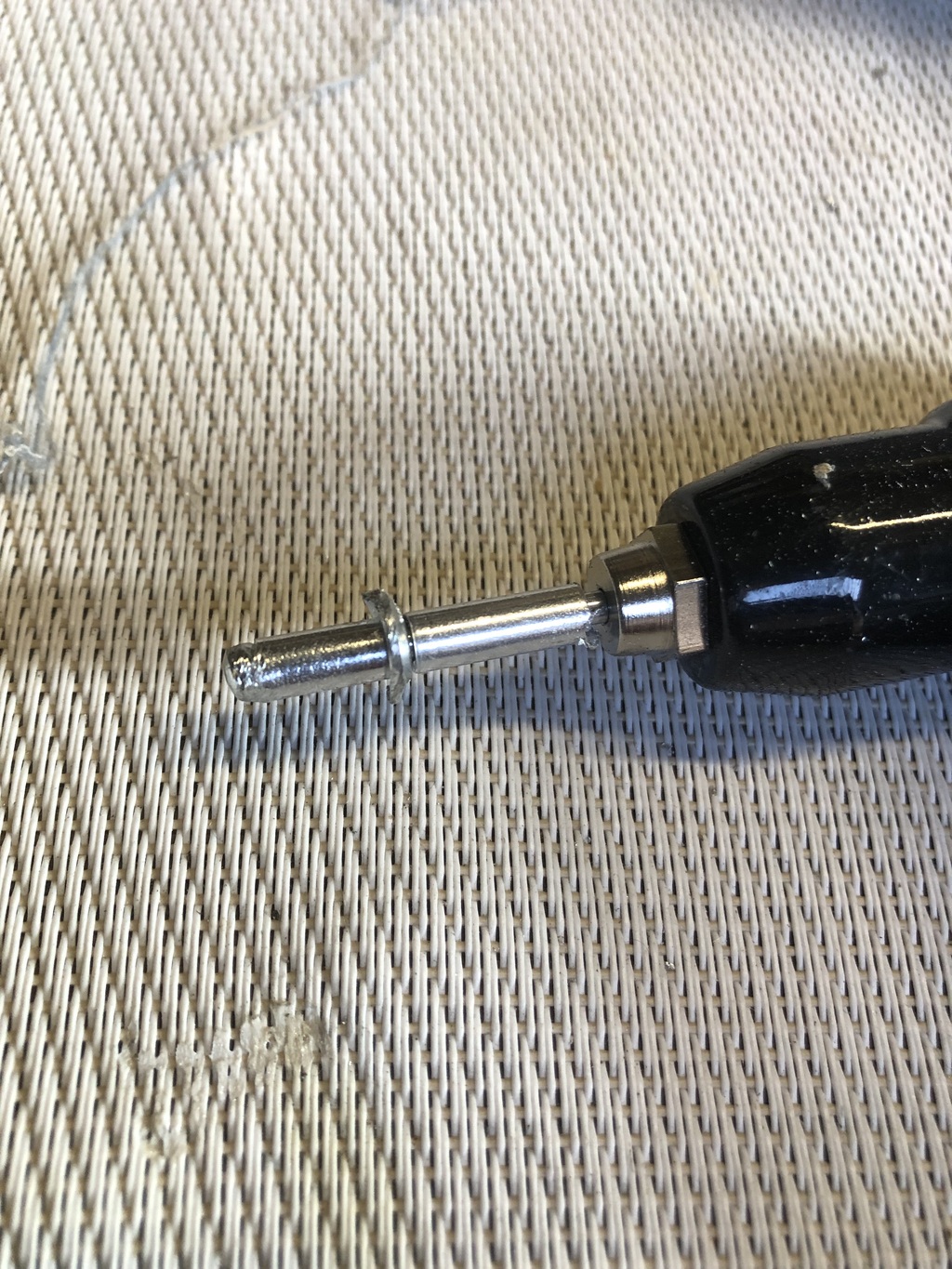 Elpeyo, le poisson rouge:Bonne idée, merci. Rallonger la tige, je garde ça au cas où raccourcir la tête de la riveteuse ne suffirait pas (le blog First signalé plus bas).·le 26 avr. 11:17