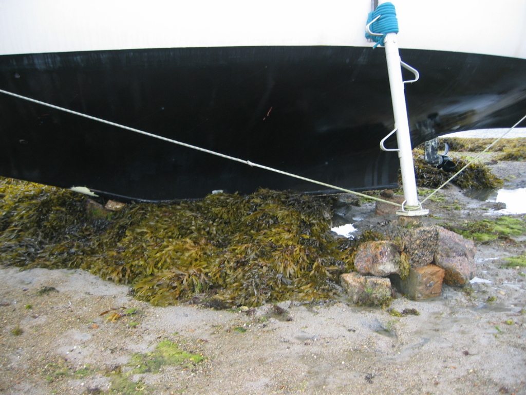 ET là, je constate que le safran et l'hélice ne craignent rien mais que le risque de percer la coque de mon bateau de 8 tonnes en charge est réel, s'il bascule à tribord sur la pointe de roche d'â côté, ou pire à bâbord en contrebas.