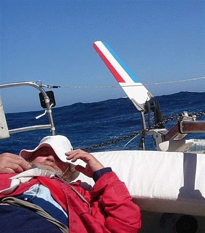 Une merveille, je ne pourrais plus m'en passer: il barre seul au près par 6B avec de la mer. Même, souvent, il barre mieux que moi (moins de sinusoïdes, ça se voit sur la trace du lecteur de cartes)! Sans fatiguer, pendant des heures. Et moi pendant ce temps, je profite, je peaufine un truc, ma nav, etc... :-)