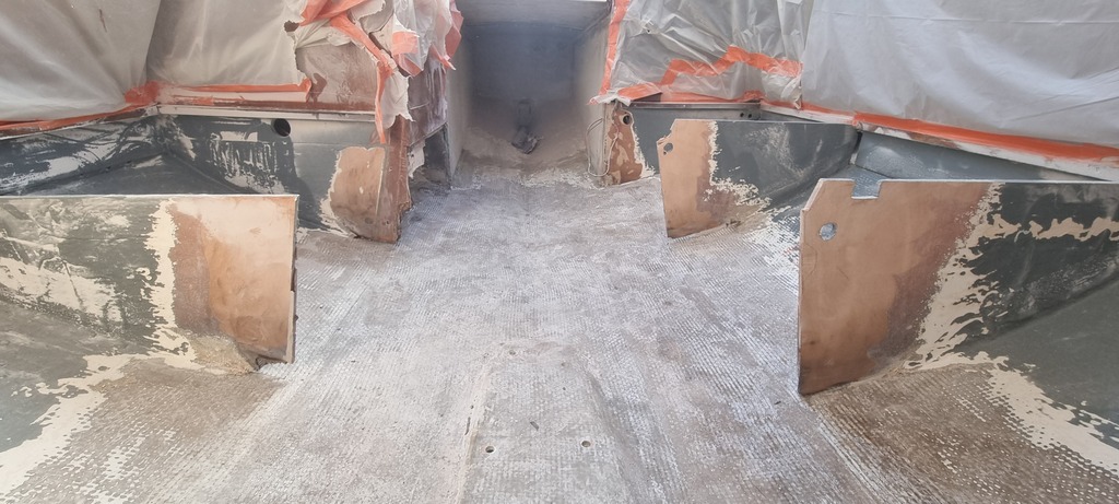 Personne n'a proposé, mais je me demande si ça ne vaudrait pas le coup de renforcer le fond (toute la surface sous "plancher", y compris cab avant) avec un truc genre quadriaxial (ou autre db 0-90 + bx 45 -45, ou roving + roving posé à 45°, du moment qu'il y a des fibres dans 4 directions à 0,-45, +45 et 90 , et du mat selon la résine) de façon a avoir une surface d'accroche propre pour les varangues. Il y aura toujours le problème de l'accroche de ce renfort sur le fond existant. Mais on aura mis la surface maximum. Et si on veut aller au delà, il ne reste qu'a refaire un moule, et stratifier une nouvelle coque.