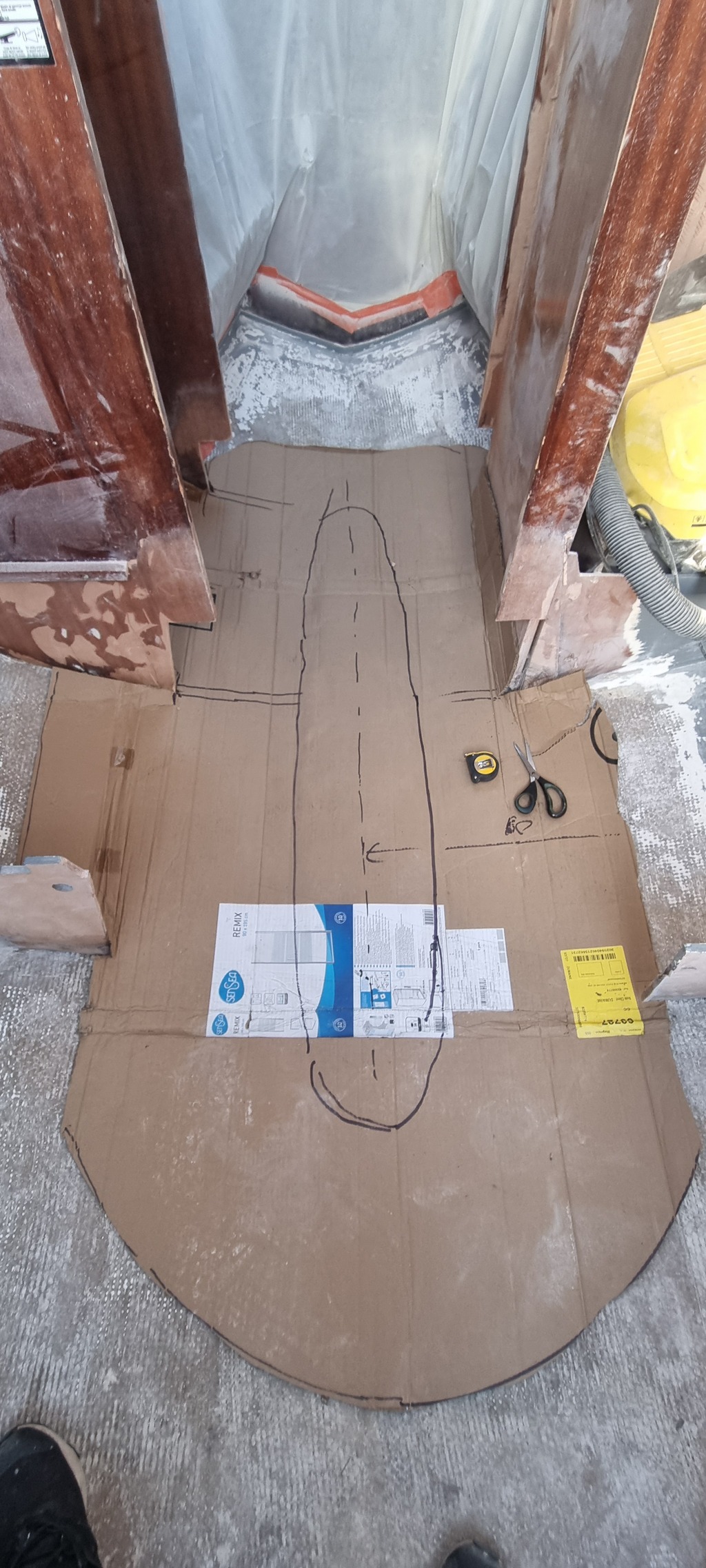 Découpe d'un patron pour le renforcement de la coque autour de l'empreinte de quille