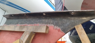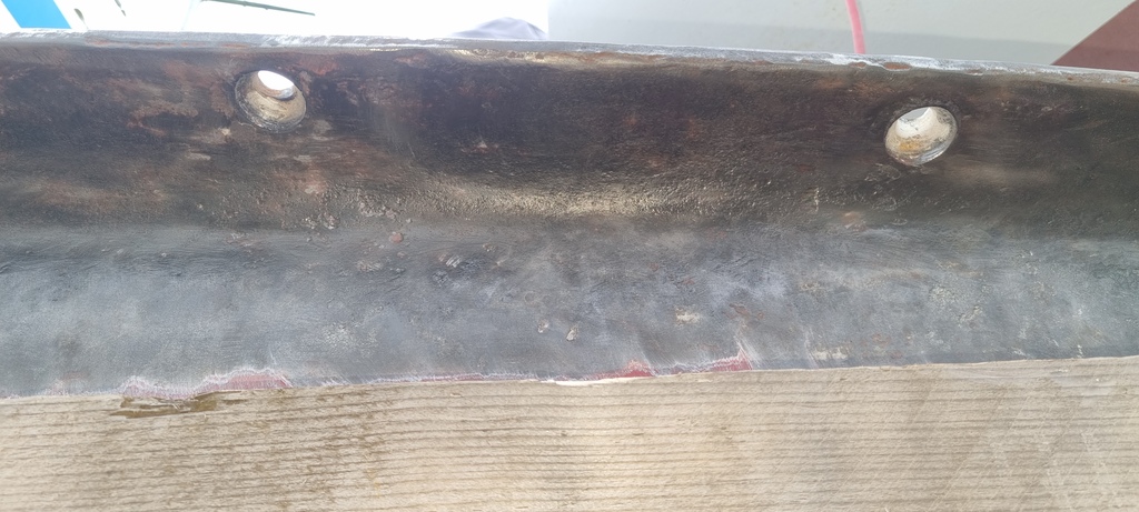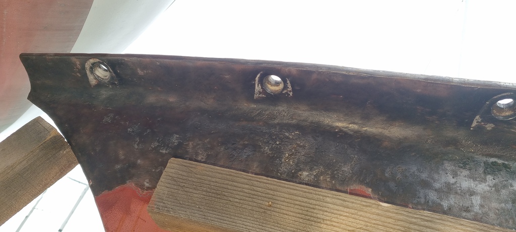 lanav72:Oui tu as raison, la quille a 2 défauts : la pointe avant est cassée de longue date et à l'arrière, la corrosion avait mangé la fonte ce qui nous a obligé a décaler le boulon bâbord à qqs cms vers l'avant.·le 15 sept. 12:04