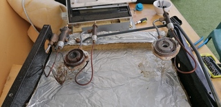 Une fois toute les tubulures, robinets, et thermo-couples démontés, je suis allée voir mon voisin préféré qui possède un bac à ultrason.