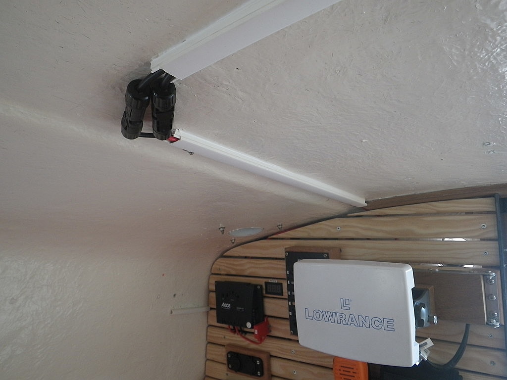 Par contre, je ne suis pas convaincu par la solution du panneau souple posé sur le pont. Invariablement, il est à moitié à l'ombre et ne produit plus grand chose à ce moment-là. Je vais le stratifier pour le rendre rigide et le mettre sur un matereau à l'arrière.