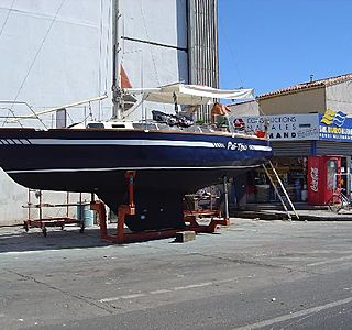 Le chantier qui nous accueille à la possibilité de nous entrer et sortir notre bateau d'un hangar chaque fois que nécessaire pour le sablage, permettant de "rentrer" le bateau après chaque opération de sablage.