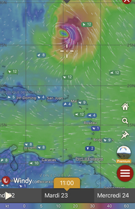 Et bien maintenant c'est pile poil sur la Martinique avec des vents de 80 knts,