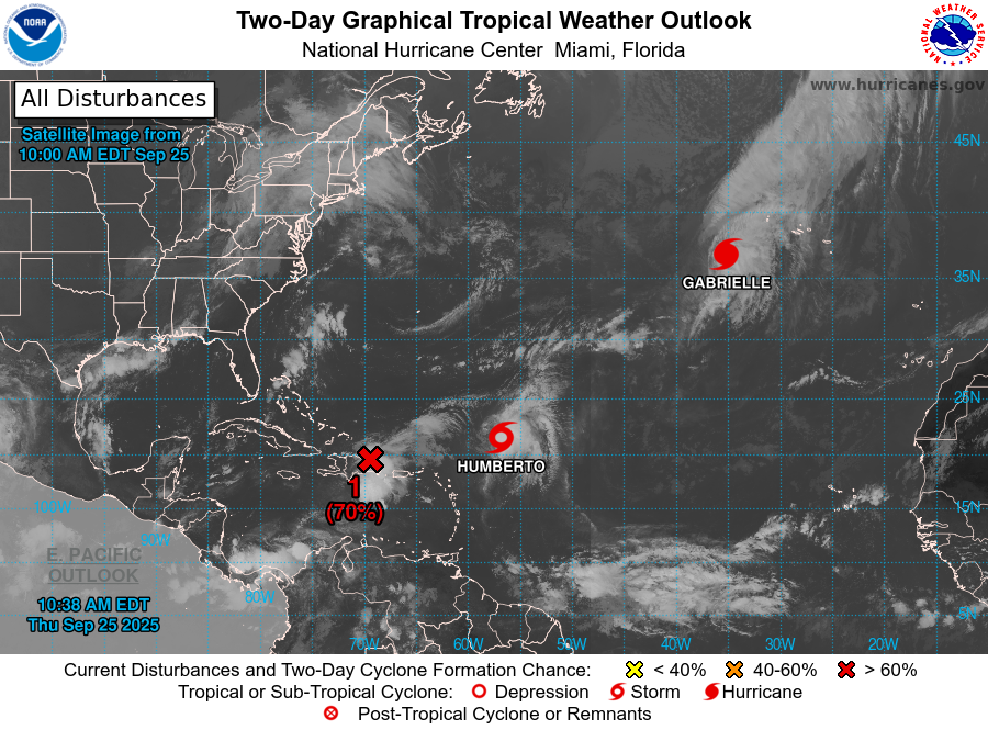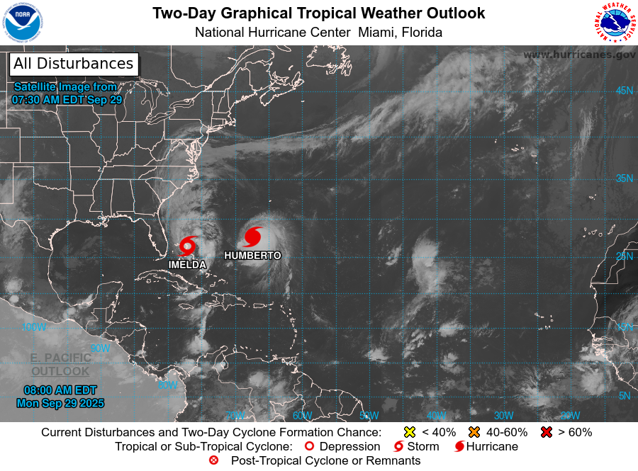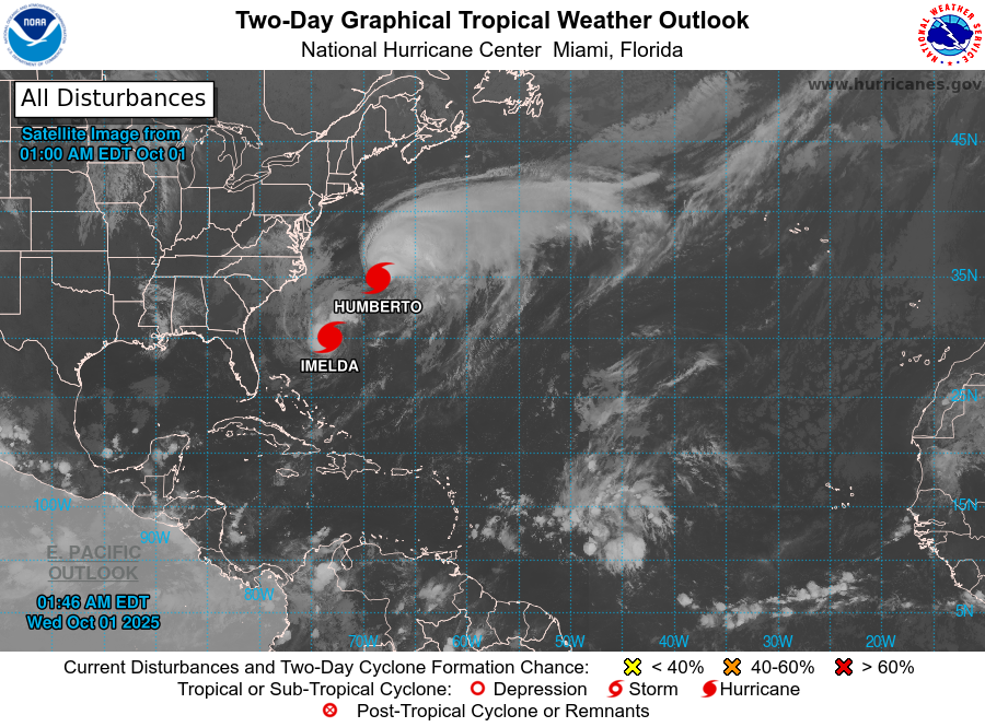 On voit que le gros Humberto s'éloigne lentement vers le NE.