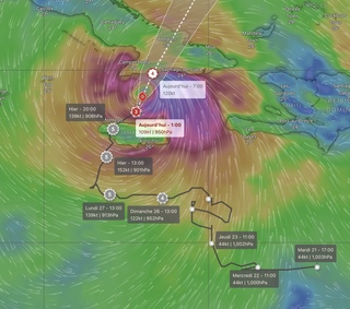 Peut être ça passera entre les deux îles, souvent les cyclones suivent le chemin avec moins d'obstacles donc les canaux.