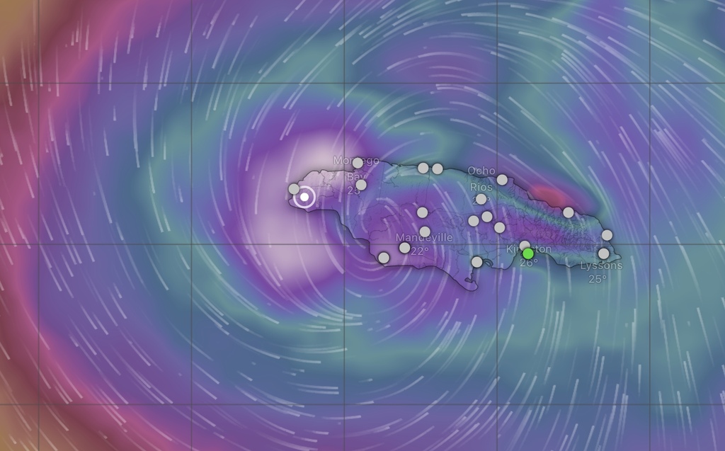L'oeil de l'ouragan Melissa est entrée dans la Jamaïque par la plage de "treasure Beach" Mardi 28 aux environ de 15h