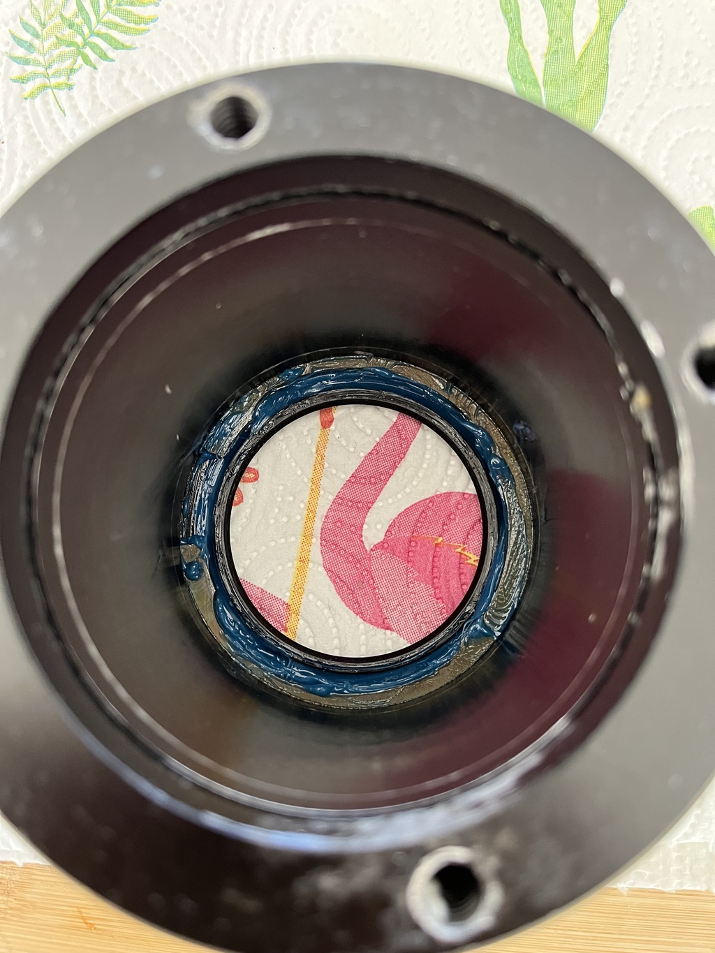 Après avoir bien nettoyé l’ensemble, j’ai commencé par le joint spi du bas, bien graissé et par le grand circlip intérieur du bas.