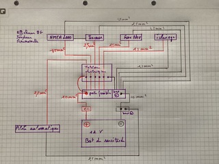 Bonjour, j’aurais voulu quelques avis sur le schéma électrique suivant, sans tenir compte du rechargement à quai et par solaire pour le moment.