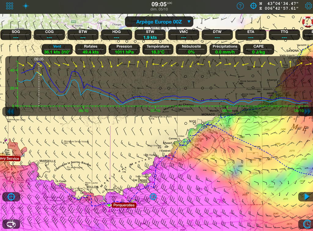 Il y a toujours un effet venturi avec la côte, en arrivant le vent vire toujours pour passer plein ouest pile dans le nez. Et ce n'est que passé Cavalaire que tu commences à être abrité et que tu peux tirer des bords contre la côte.