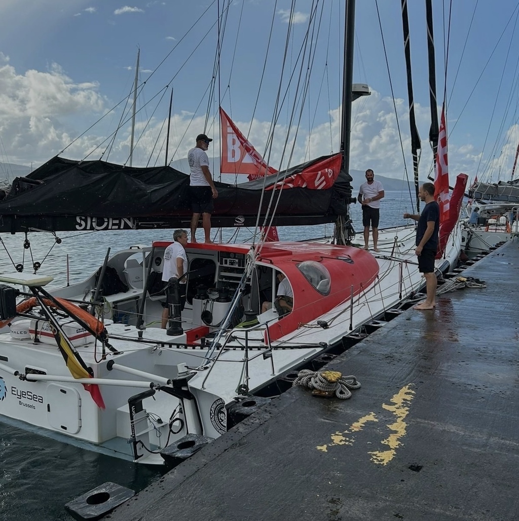 Photo 4, une belle vue sur ce bateau EyeSea de Denis Van Weynbergh, skipper de l’IMOCA D’Ieteren Group, qu'Edouard était allé voir.