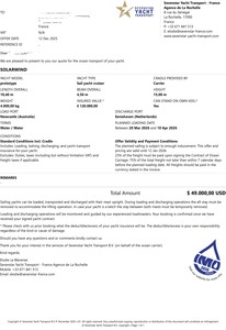 j'ai le retour du Devis pour le transport d'Australie à la Hollande pour le SOLARWIND. Je l'ai transmis à Edouard par Facebook