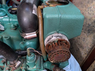 le bateau est de 2003 et excepté le remplacement du coude sortie échangeur bouché je n'ai pas d historique.