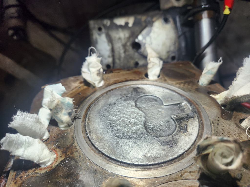 Les autres pistons sont OK, quand j'avais pris les compressions ce cylindre avait 26 bar de compression contre 29, 29, 28 pour les autres. J'ai fait réviser les injecteurs il y a 1 an et ils étaient OK, ce qui me fait penser que le dommage sur le piston est plutôt ancien et pas du à un problème récent.