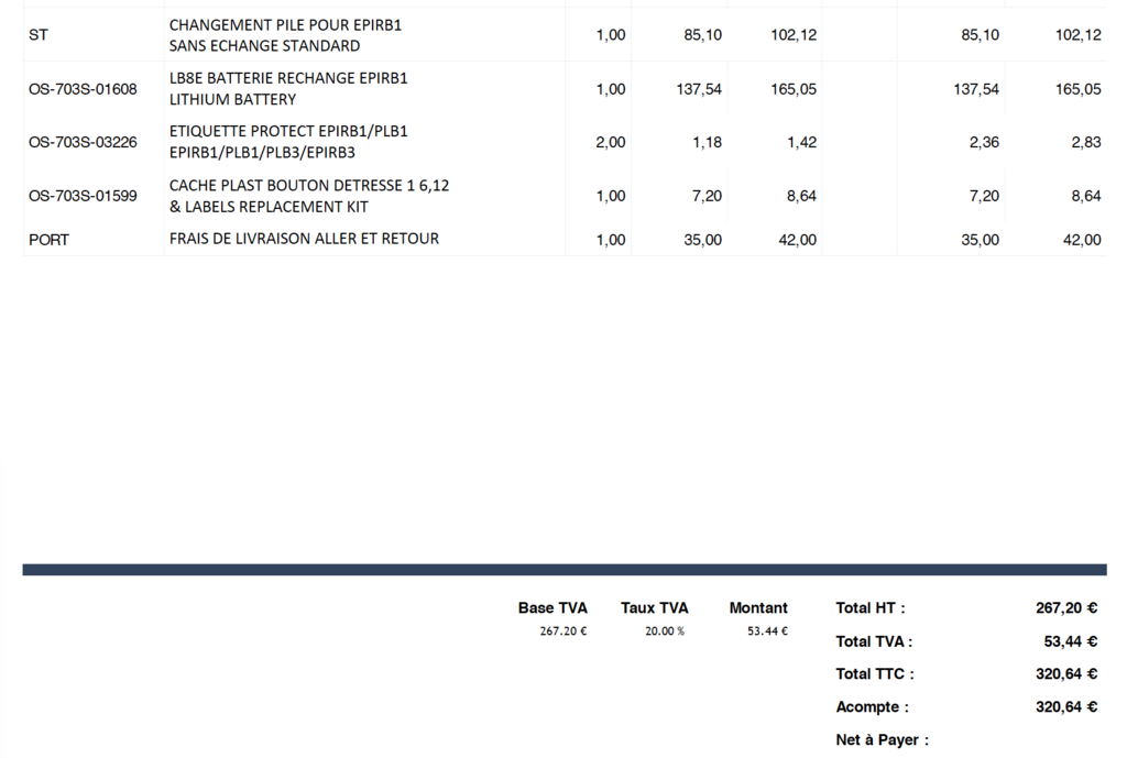 Si je comprends bien, le prix est de 135€ pour le changement de batterie garantie 10 ans d'une EPIRB1 Ocean Signal.