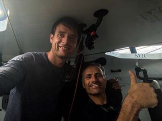 Ça fait plaisir de voir Jérémie avec ce sourire, ça va lui faire du bien. Son bateau semble toujours difficile, a deux, surement plus gérable qu'un Vendée Globe.