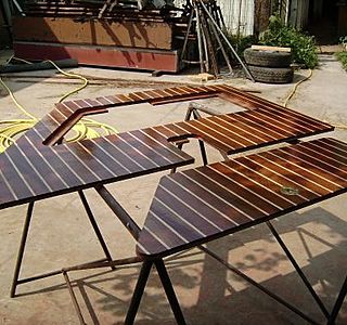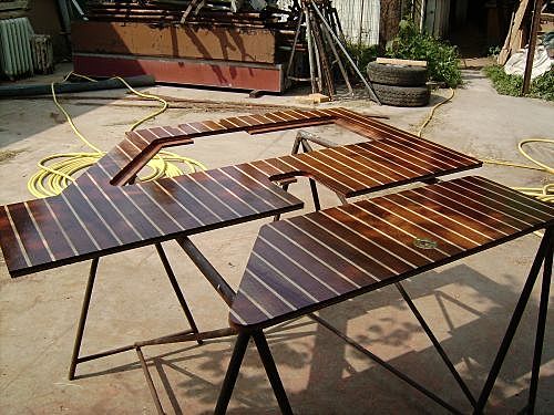 ...tillac AR et trincarin puis tillac AV qui sont de traditions. Du parquet flottant qui mécaniquement contourne la difficultée du savoir, bricole PROFESSIONNELE.