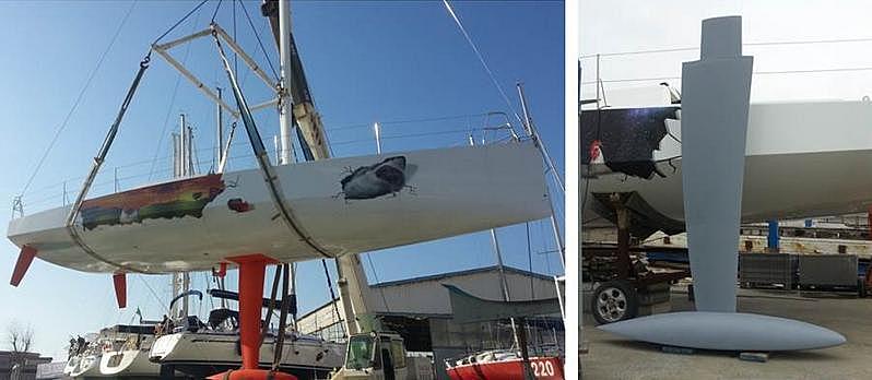 dans les compte-rendus qu'il envoyait, et même hier, non il ne mentionne pas de choc. Une image de la quille quand encore elle était en un seul morceau.