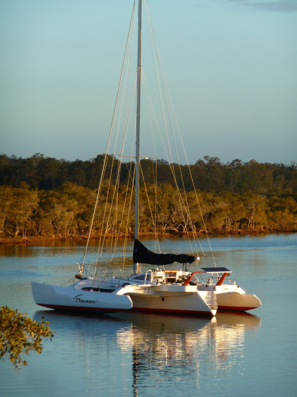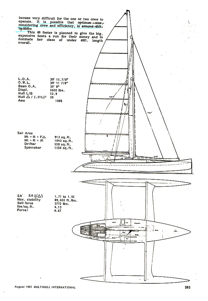 Mais c'est vrai : les flotteurs sont plus courts que la coque, au départ. Après un petit refit en étrave inversée (juste les flotteurs) l'écart va se réduire, et le cap au près s'améliorer (en principe). Je ne lance aucun débat, réparant des multis depuis 2008 j'ai vu de tout et son contraire. c'est l'archi qui va dire.