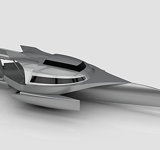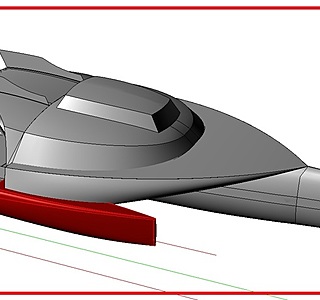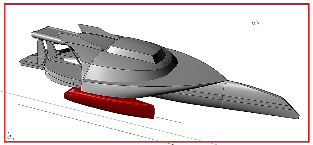 mais peut etre que je devrais faire evoluer la chose en les faisant pivoter sur le nez pour qu il y ai moins de surface mouille a la vitesse de croisiere et que plus le bateau s enfonce sur l arriere par l effet de la pousse du moteur et plus le et plus les flotteurs soient en position horizontale avec en plus des redans lateraux avec de l angle qui aporte de la flottaison dynamique