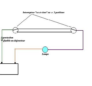 1° oui, schéma idem de la maison pour deux commandes avec des inter spdt (un circuit deux positions actives), soit marine normal, soit étanches si prés de l'extérieur, soit maison, soit camping car