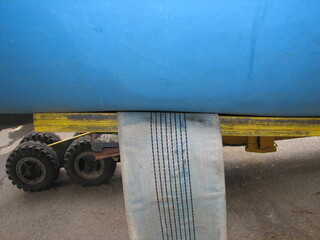 Pour que la coque soit au maximum dans sa forme initiale sans déquiller, ne serait-il pas pertinent de détendre le gréement et de faire un appui faible sur la quille et fort sur un étaiement très reparti sur la carène?