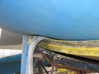 On peut voir que la partie avant avant de la quille est cassé. C'est de longue date comme ça... surement un talonnage à l'époque et qui explique peut etre mes décollements de varangues actuels ?