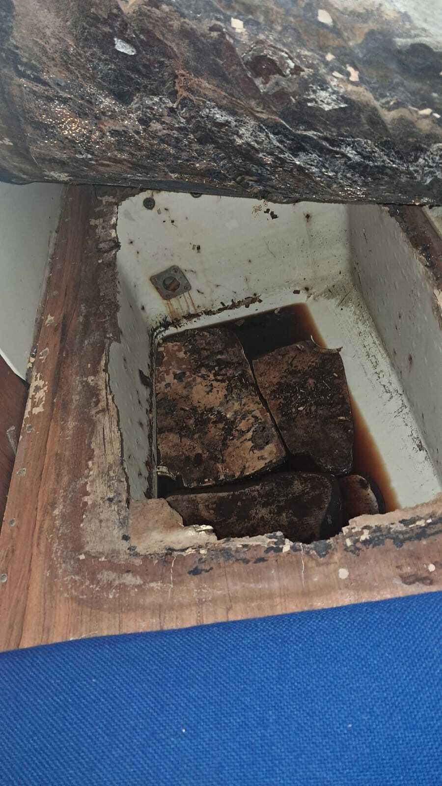 Bonjour à tous, je viens de visiter le Yamaha 29, quelques surprises comme sur la photo que je vous partage, c'est sous la couchette tribord. Quelq'un a une idée de ce que ça peut être, c'est comme si il y avait un emplacement pour la vache a eau, mais sans vache à eau.