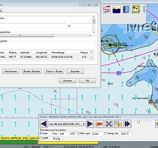 en photo le grib avec la prévision de vent et de courant a l instant de la photo .