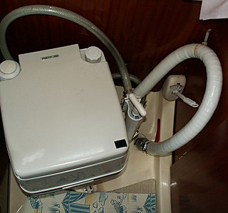 j'en ai un d'origine 90l avec une vanne 3 voies en sortie de wc et un macérator en sortie pour évacuer au large ainsi qu'une prise sur le pont pour évacuer dans les ports équipés (qui sont rares ou en panne)