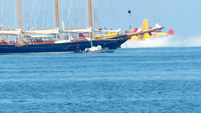 Je ne sais pas si j'ai été distrait ou si ce sont les remous de l'avion mais le bateau a fait un demi tour à 180° et ça sentait fort le kérosène.