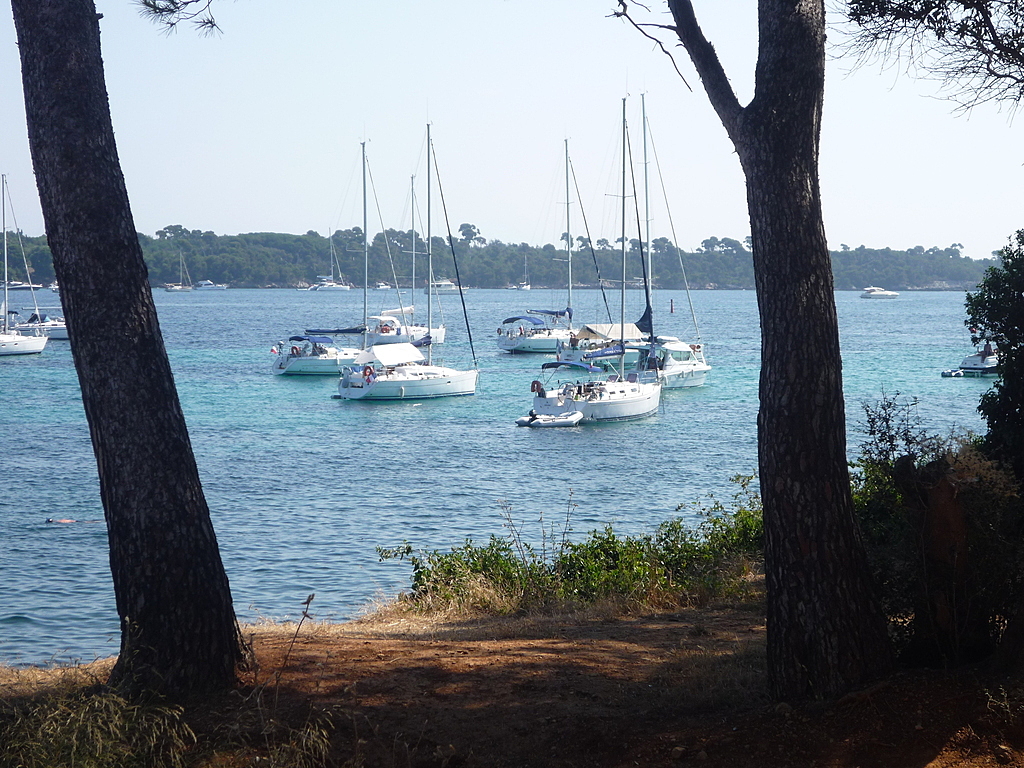 je te conseille de mouiller aux alentours du petit port de st Honorat en juillet il y a moins de monde, de plus le passage entre les îles et réglementé en vitesse . Si tu as une annexe, tu peux te ravitailler en eau au petit port de plus la visite le l’île et de son Abbaye et super. Tu peux même acheter du vin de l’île cher à mon gout mais tu feras une bonne action car les moines entretiennent le patrimoine et cela coûte cher.