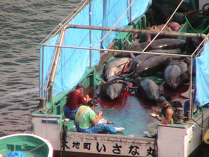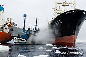 les baleiniers japonais pêchent la baleine dans des eaux territoriales que tout le monde reconnait (sauf eux..), harponnent sous couvert scientifique et alimentent (c'est le cas de le dire) le marché avec une pratique archaïque qui compromet non seulement la survie des plus grands mammifères de la planète, mais en enfreignant toutes les lois internationales.