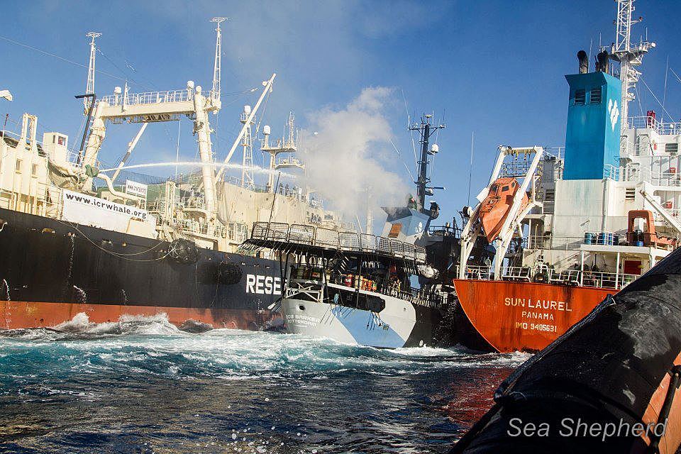 Je trouve le comportement des baleiniers Japonais scandaleux, non seulement ils sont en infractions pour leurs soit disant recherches sur les baleines, mais en plus en infractions avec les lois maritimes les plus basiques. Ont peut ne pas approuver la façon de faire de Sea Shepperd (et encore) mais la, les baleiniers dépassent les bornes des limites!