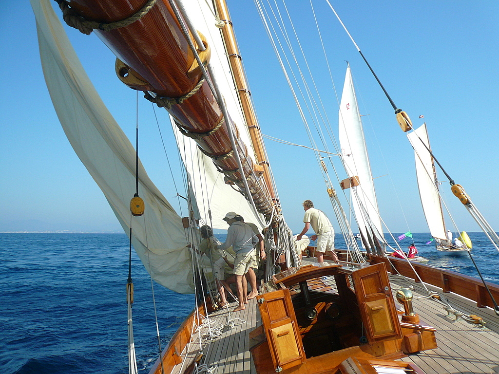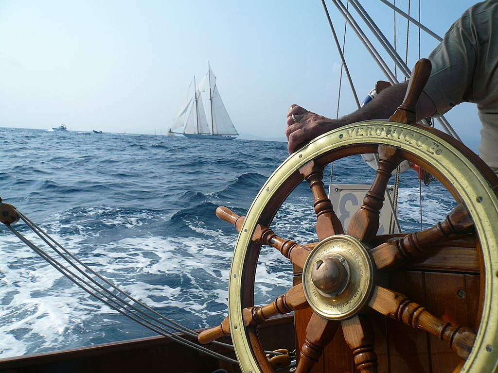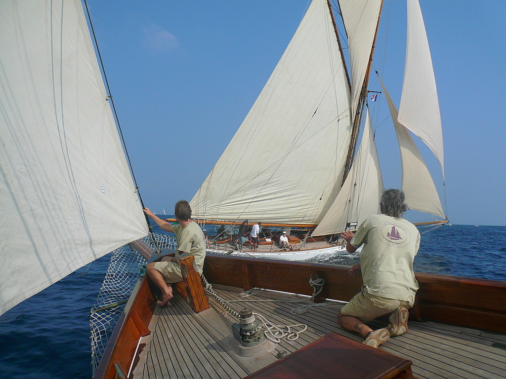 Au rythme méditerranéen qui sied aux quais de St Tropez; depuis le début de la matinée les 12 équipiers cosmopolites de « VERONIQUE », Argentin, Anglais, Suédois, Uruguayen, Français et même Malouin*, préparent cette vieille dame en configuration course.
