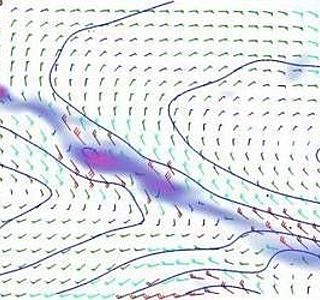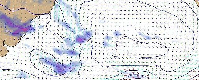 Les flèches vertes se situent dans mon Nord-Est, j'ai 16.5 nds de vt qui fraichit...
