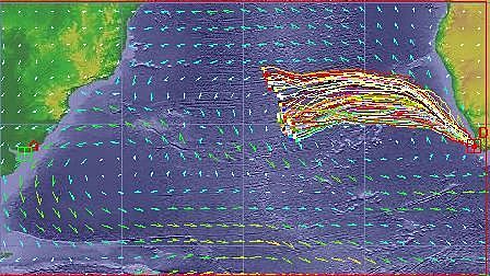 Objectif : rallier les 25° Sud par 0° Ouest d'ici environ 60 heures, puis cap au 270 et redescente sur Buenos Aires.