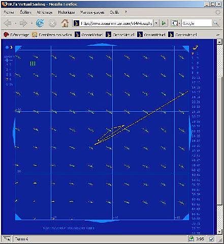 Pour ma part, départ facile : cap au 336° pour "suivre" le vent et passer au nord de la bulle.