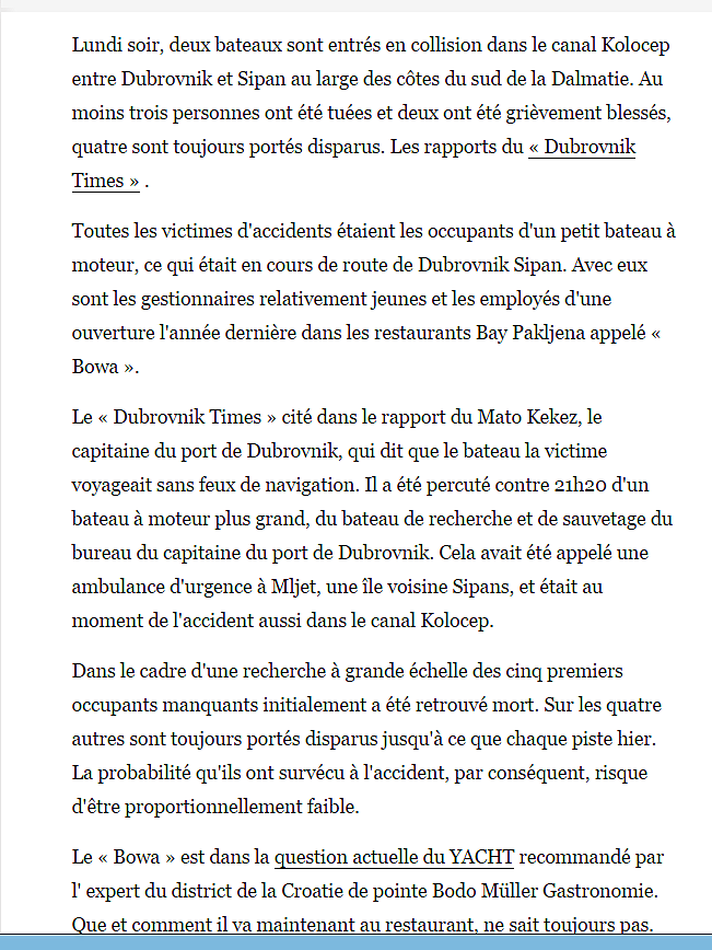 Purée, le bateau SAR impliqué dans un accident mortel, ça la fout mal! :-(