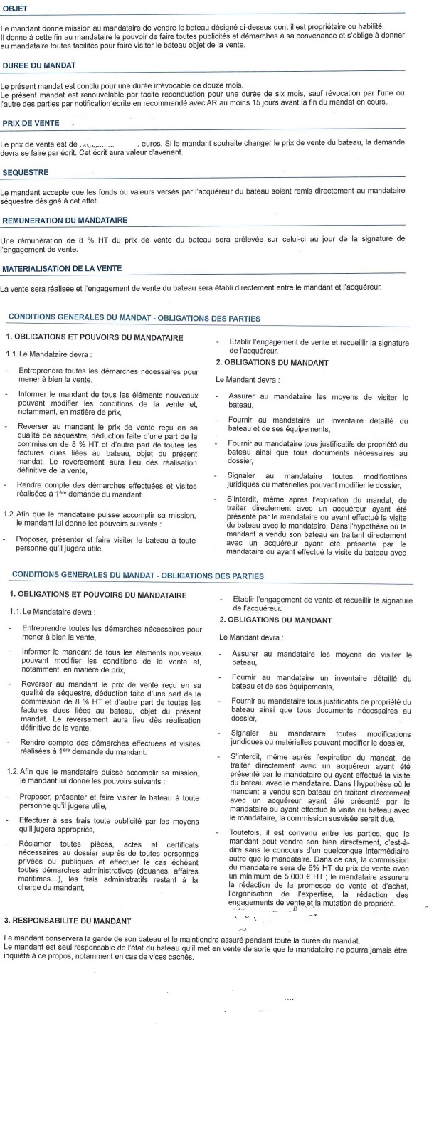 voir article 3, le mandant est seul responsable de l’état du bateau...etc