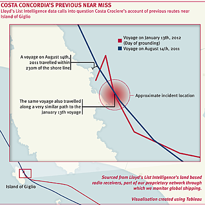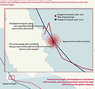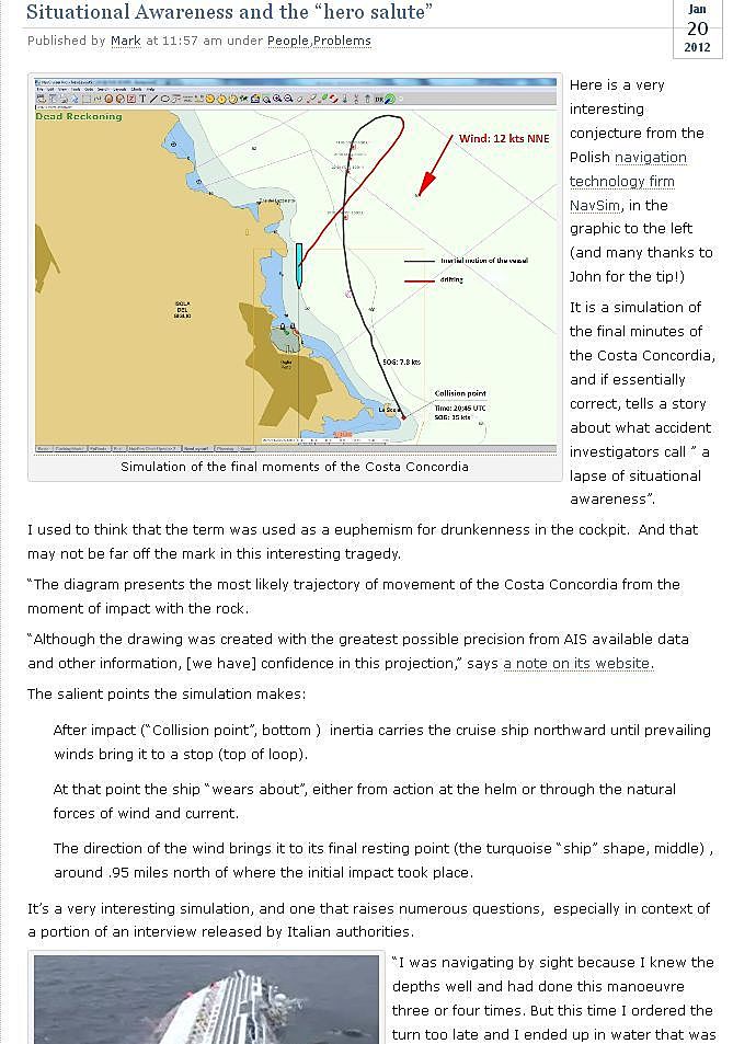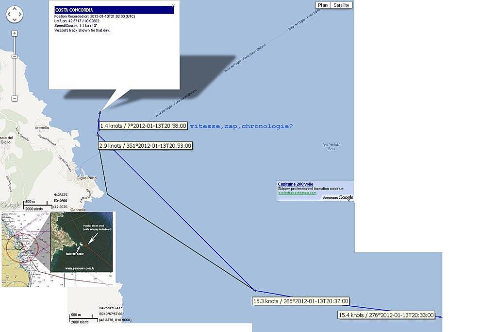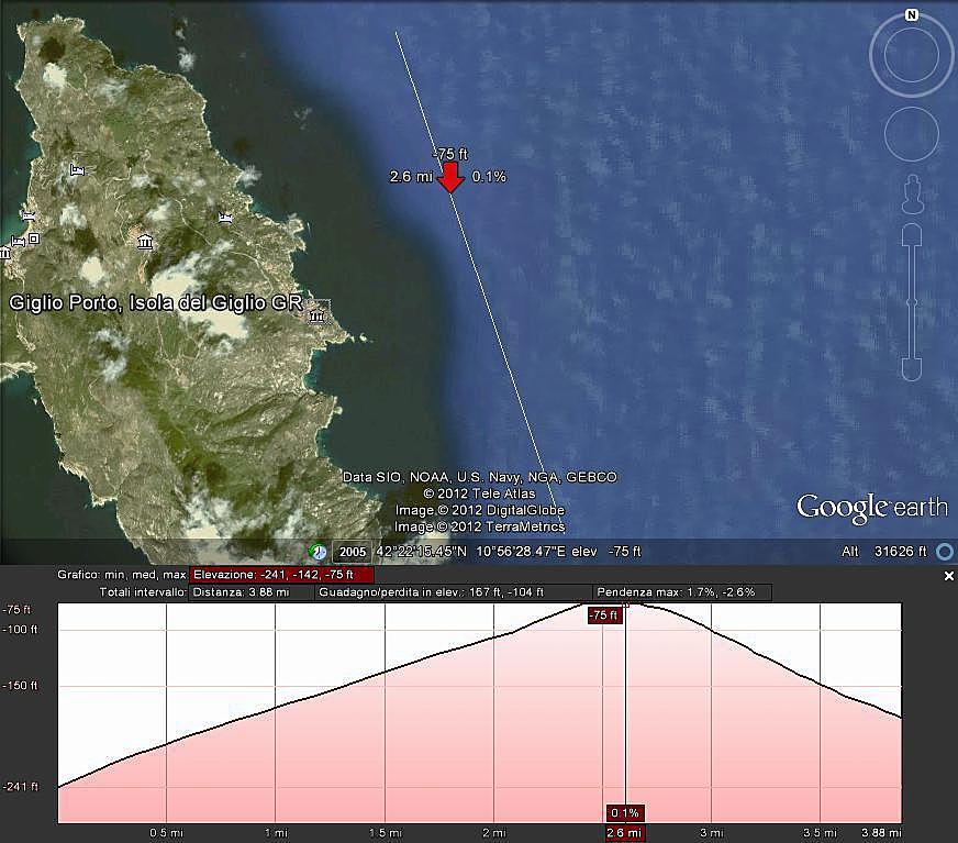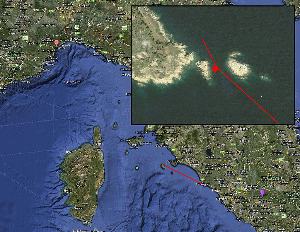 Or il semble se confirmer qu'il venait de quitter le port de Civitavecchia, distant de moins de 50M de l'isola di Giglio ou a eu lieu l'accident ???