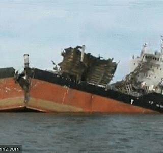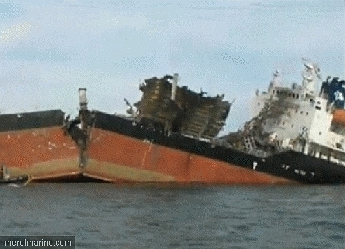cela va faire les gros titres ce midi, cette photo est bien parlante.. un nouveau récif pour les poissons..il ne peut meme pas couler... les entreprise de récup vont se frotter les mains.. pas les assureurs.