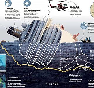 Une autre passagère, Mara Parmegiani, a décrit des "scènes dignes du Titanic", avec une bousculade parmi les évacués, des cris et des pleurs. Des passagers, pressés de monter dans les canots de sauvetage, sont tombés à la mer, selon des témoins. L'une d'elles, un septuagénaire tombé dans les eaux froides de la mer tyrrhénienne, est décédée d'hydrocution. Des unités des garde-côtes et d'autres bateaux notamment les ferries entre la côte toscane et l'île de Giglio se sont rendus dans la zone pour participer à l'évacuation des passagers et de l'équipage.