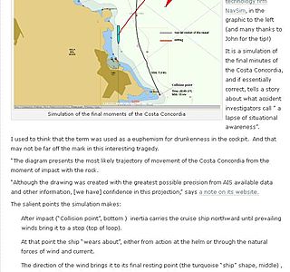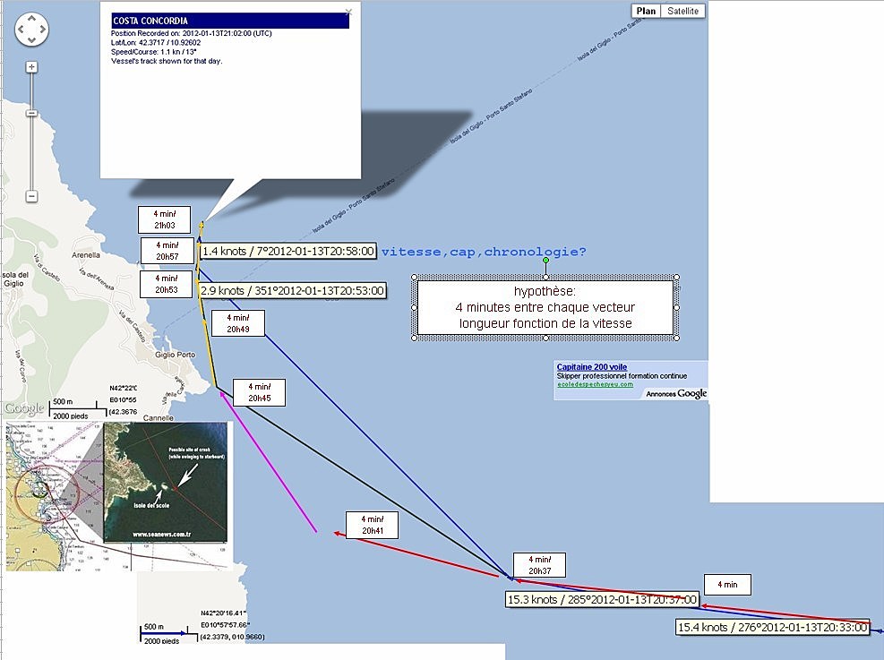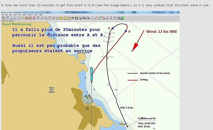 Si l'on regarde bien la vidéo de Pircarre, on voit qu'en route directe sur l’île de tous les dangers le Concordia avait une vitesse stabilisée et que alors qu'il amorce sa manoeuvre la vitesse au lieu de diminuer, augmente d'un demi-noeud.